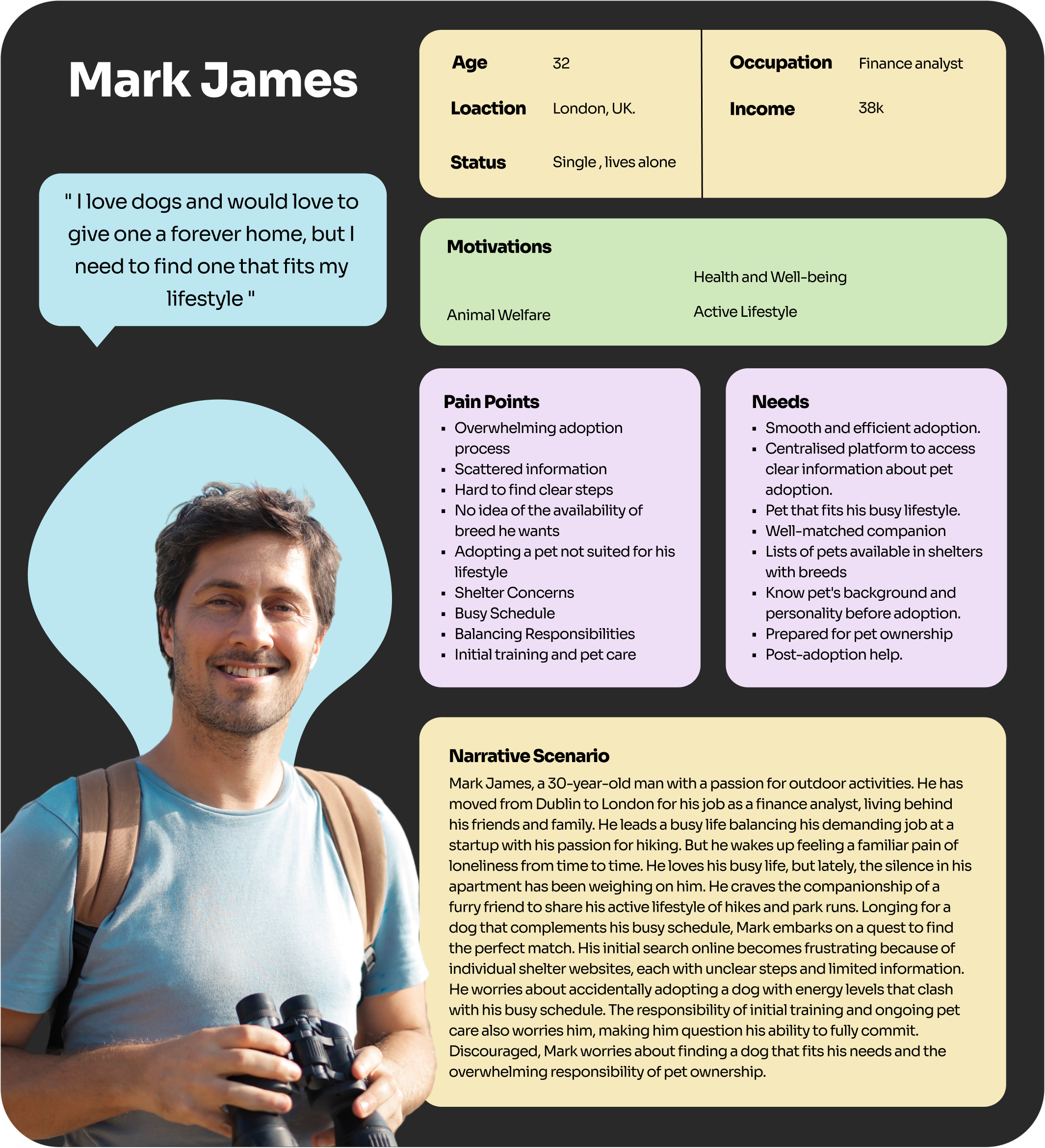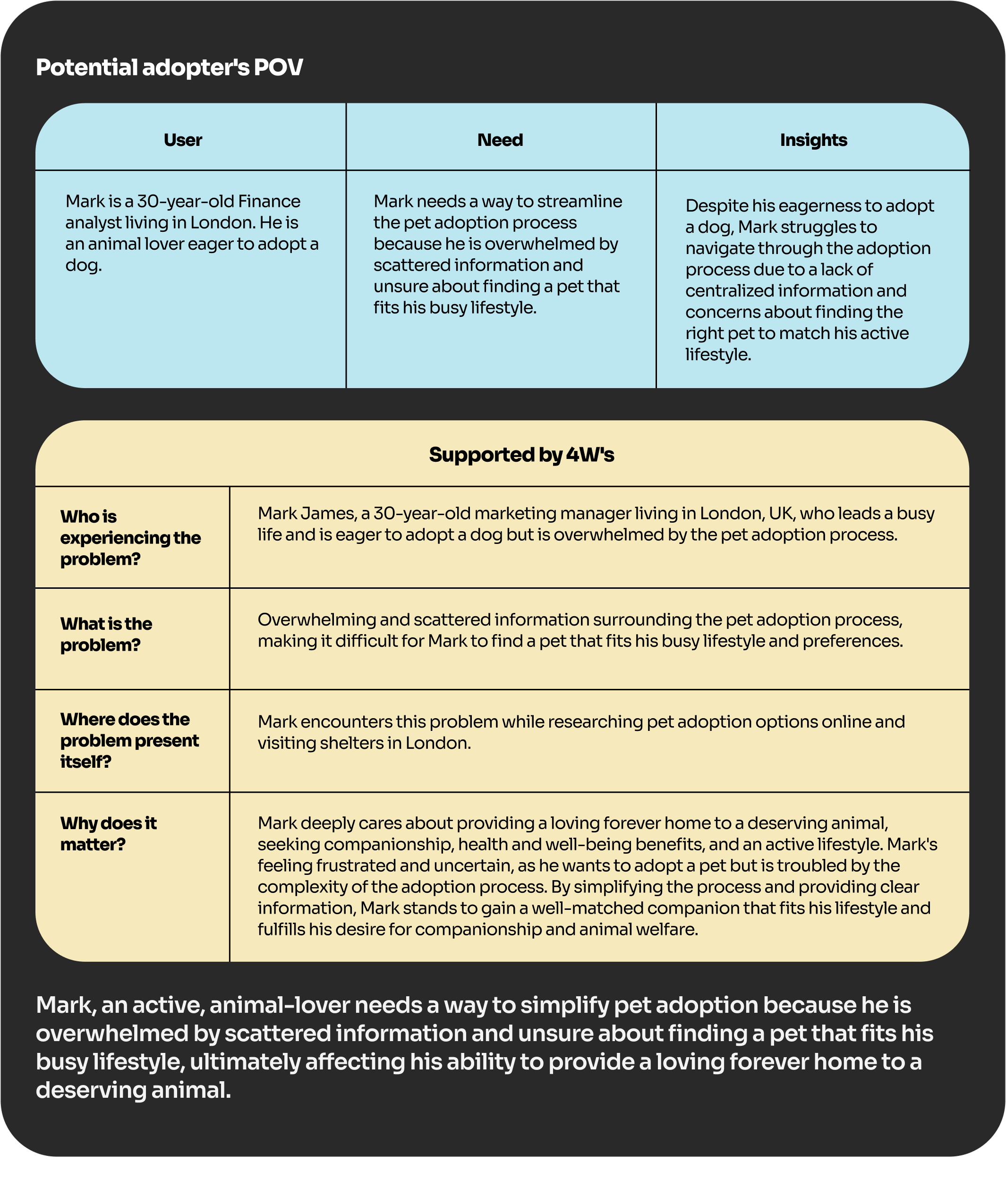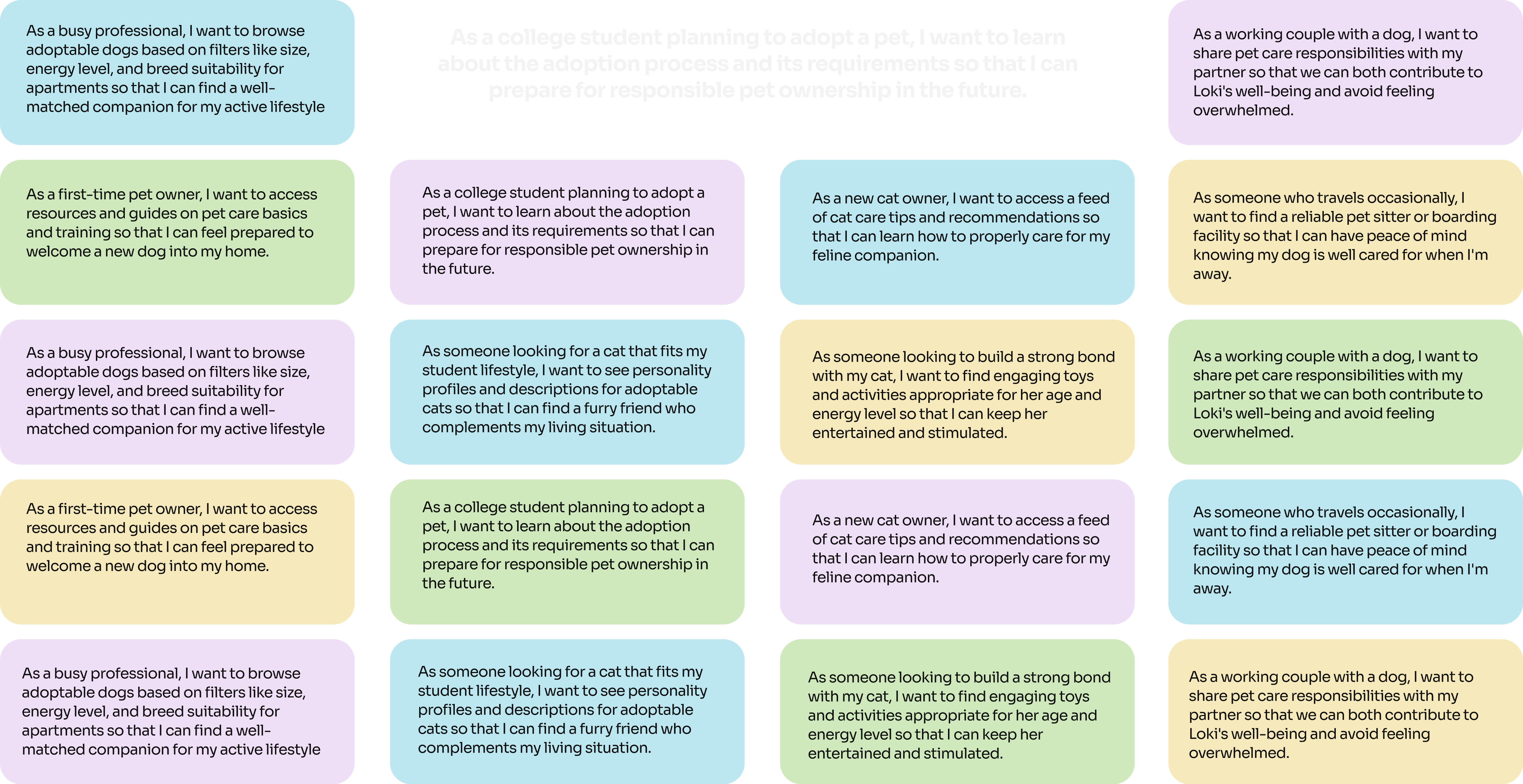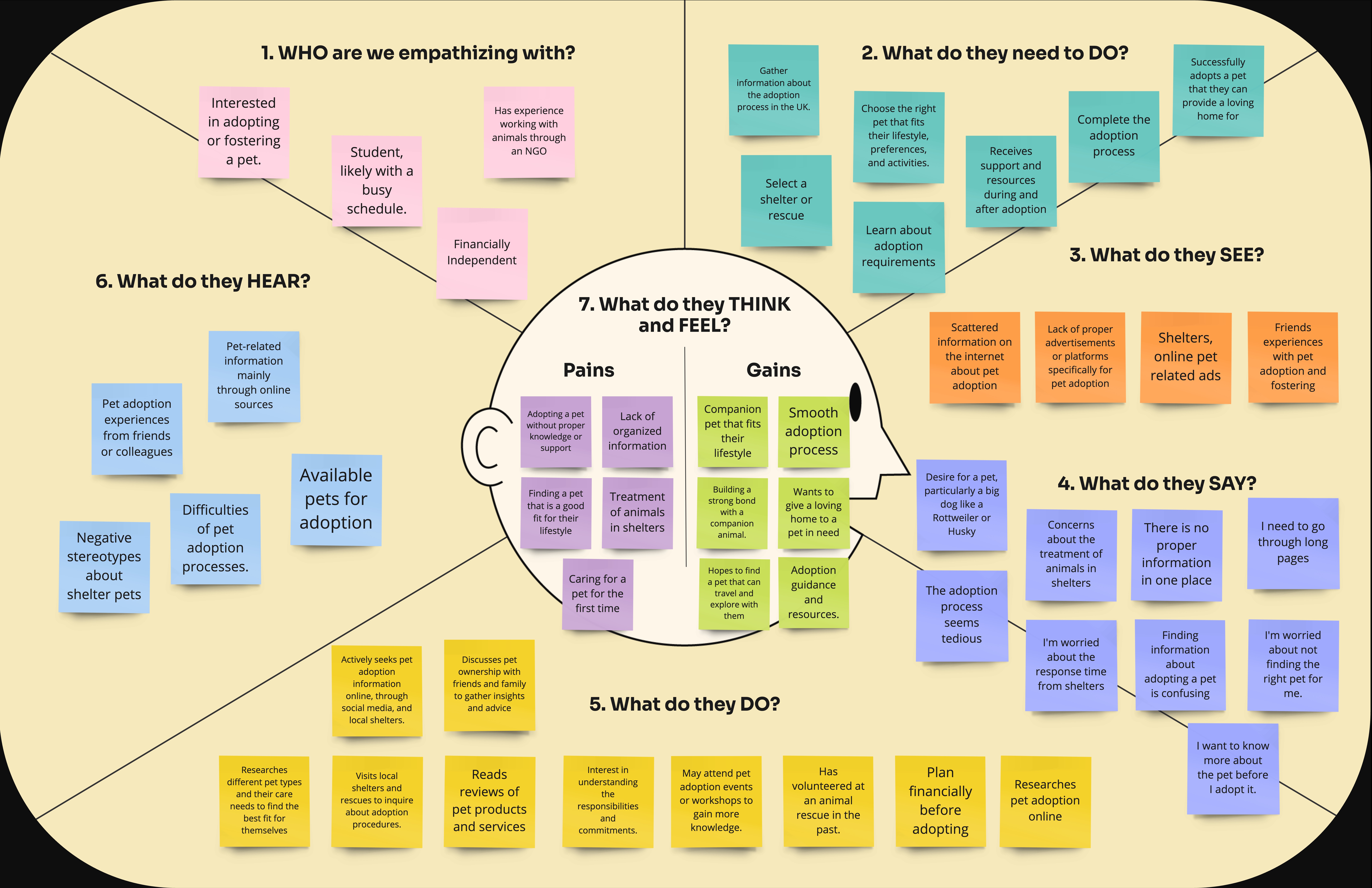 1. Adopters: They expressed frustration with the lack of up-to-date information on pet availability and the complicated adoption process. They wanted a more transparent and user-friendly platform.
